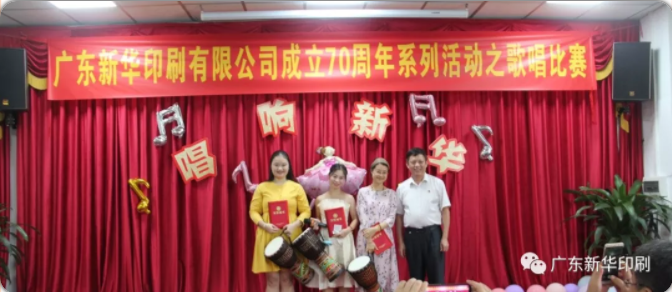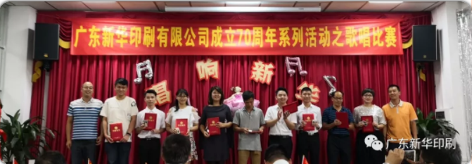 9月27日,廣東新華印刷有限公司成功舉辦了70周年系列活動之“唱響新華”歌唱比賽。公司董事長陳寧俊,總經理汪育暢,副總經理郭志健、馮駒,總經理助理廖信能出席擔任評委并為獲獎選手頒獎。